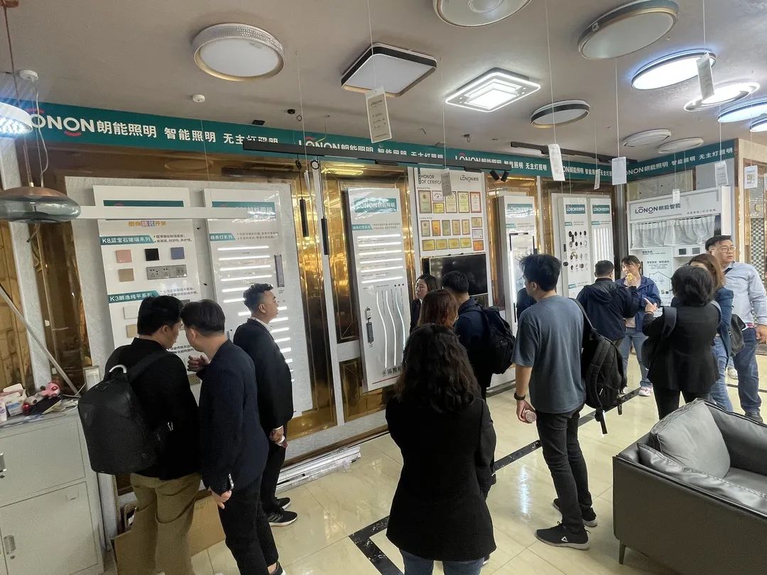 與會人員現(xiàn)場觀摩朗(lǎng)能照明(佛山)展廳