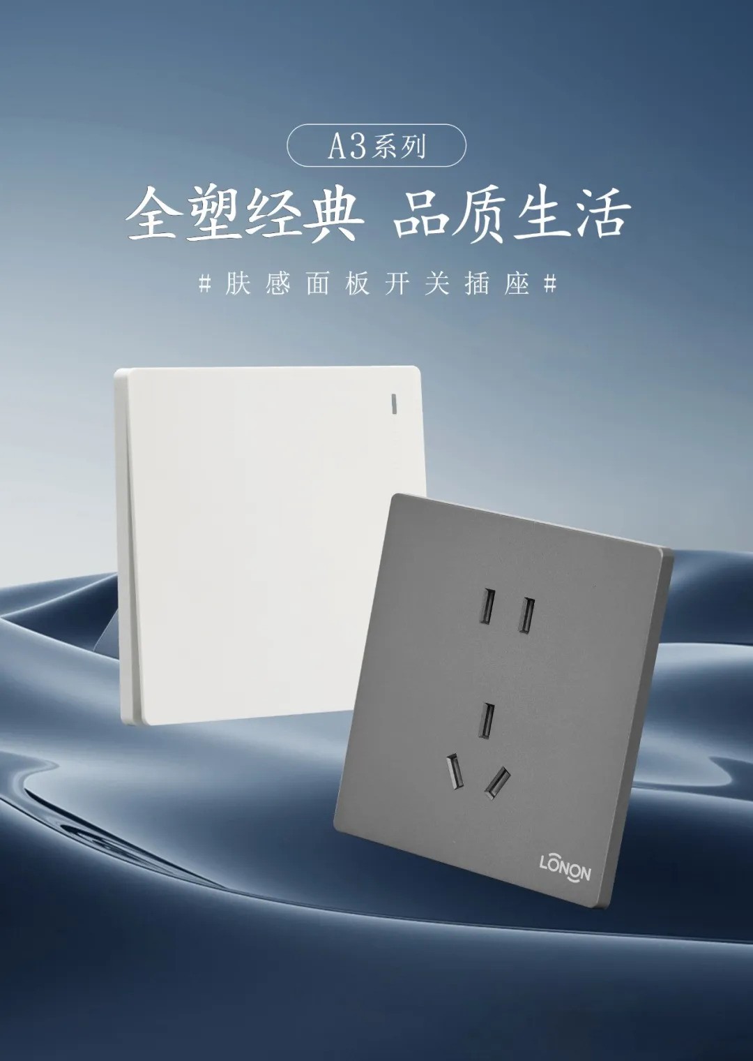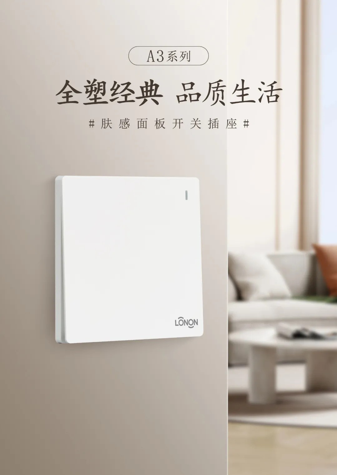 A3係列開關(guān),采(cǎi)用無(wú)框大麵板設計,全塑一體化結構,穩(wěn)定(dìng)性和耐(nài)用性均佳,高(gāo)性價比的(de)產(chǎn)品屬性,特別適合各類工程集(jí)采,滿足建築與空間的標準化要求。