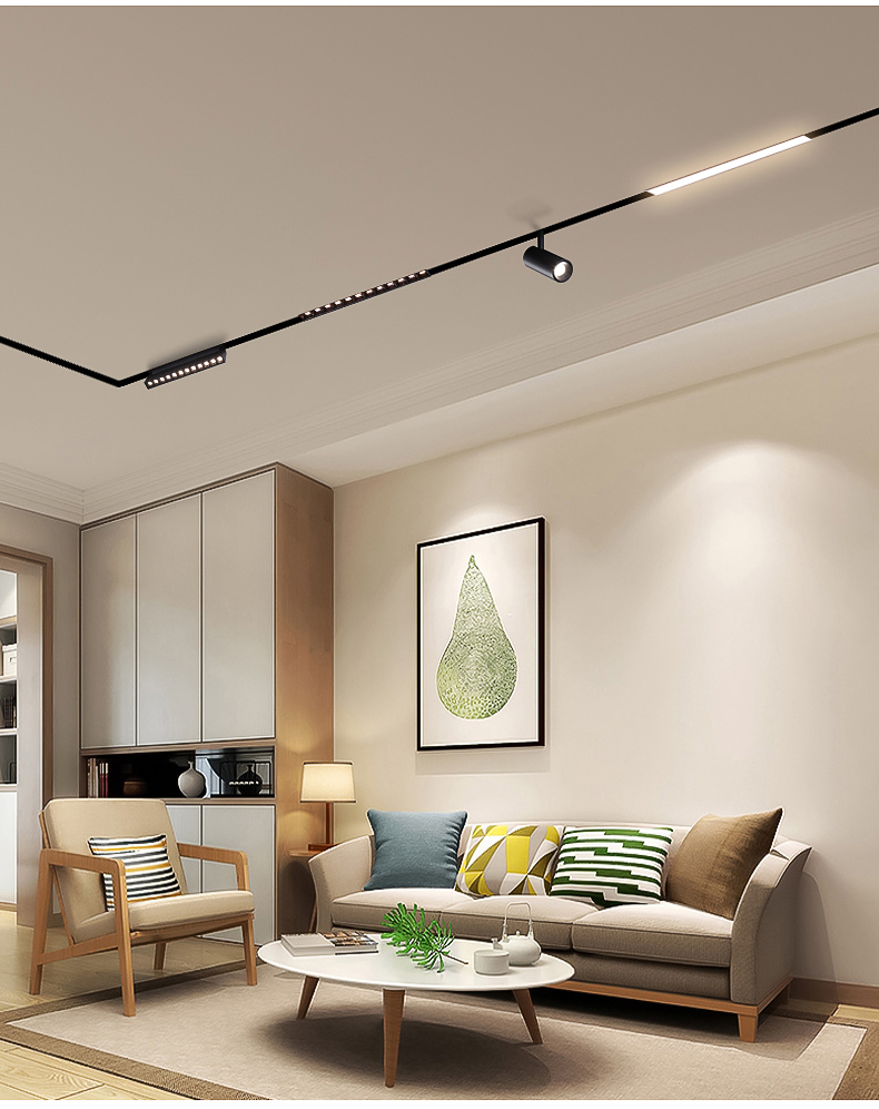 By using the magnetic track lighting system, you can have all lamps you could imaging of: Linear down light, Linear spotlight, track spotlight, Swing-able (bendable) spotlight, decorative suspended lamp, etc.